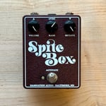 Spite Box is a distortion and fuzz box featuring an upper octave crossover distortion preamp, a saturated full range distortion circuit, and a powerful active bass boost. These three stages work together to build deep, complex tones ranging from traditional bass distortion to resonant clanging walls of bass fuzz chaos. In short, this fuzz captures our favorite bass sounds from the venerable Damnation Audio Ugly Twin Boosted Octave Fuzz but sporting a ground up custom redesign.
